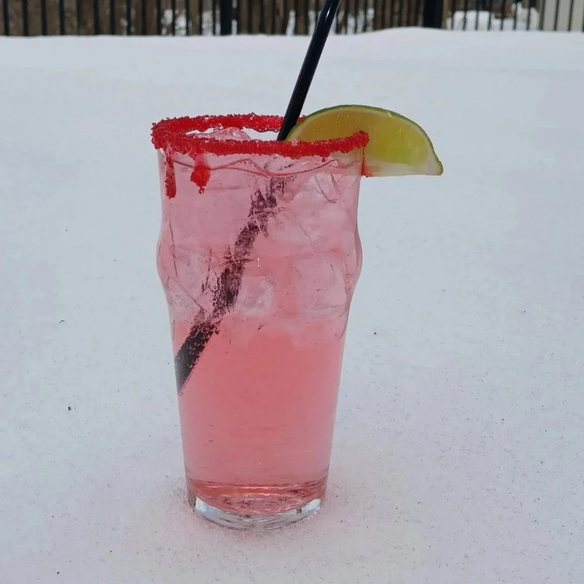 Watermelon & Coconut rum margarita, on the rocks with a red sugar rim ($10)
