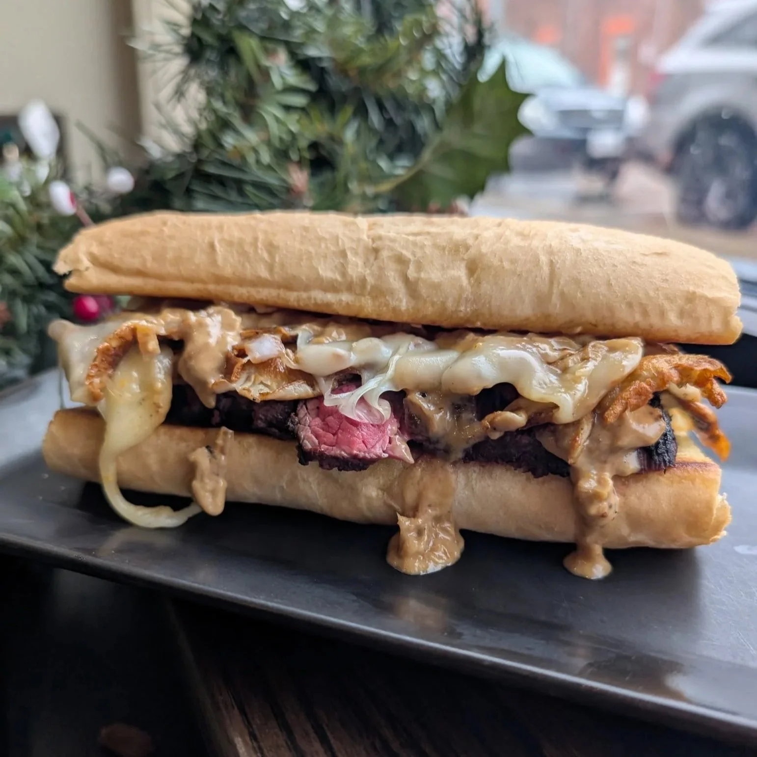 Toasted brioche topped with garlic mashed potatoes and a rich chocolate porter–braised beef & winter vegetable stew ($20)